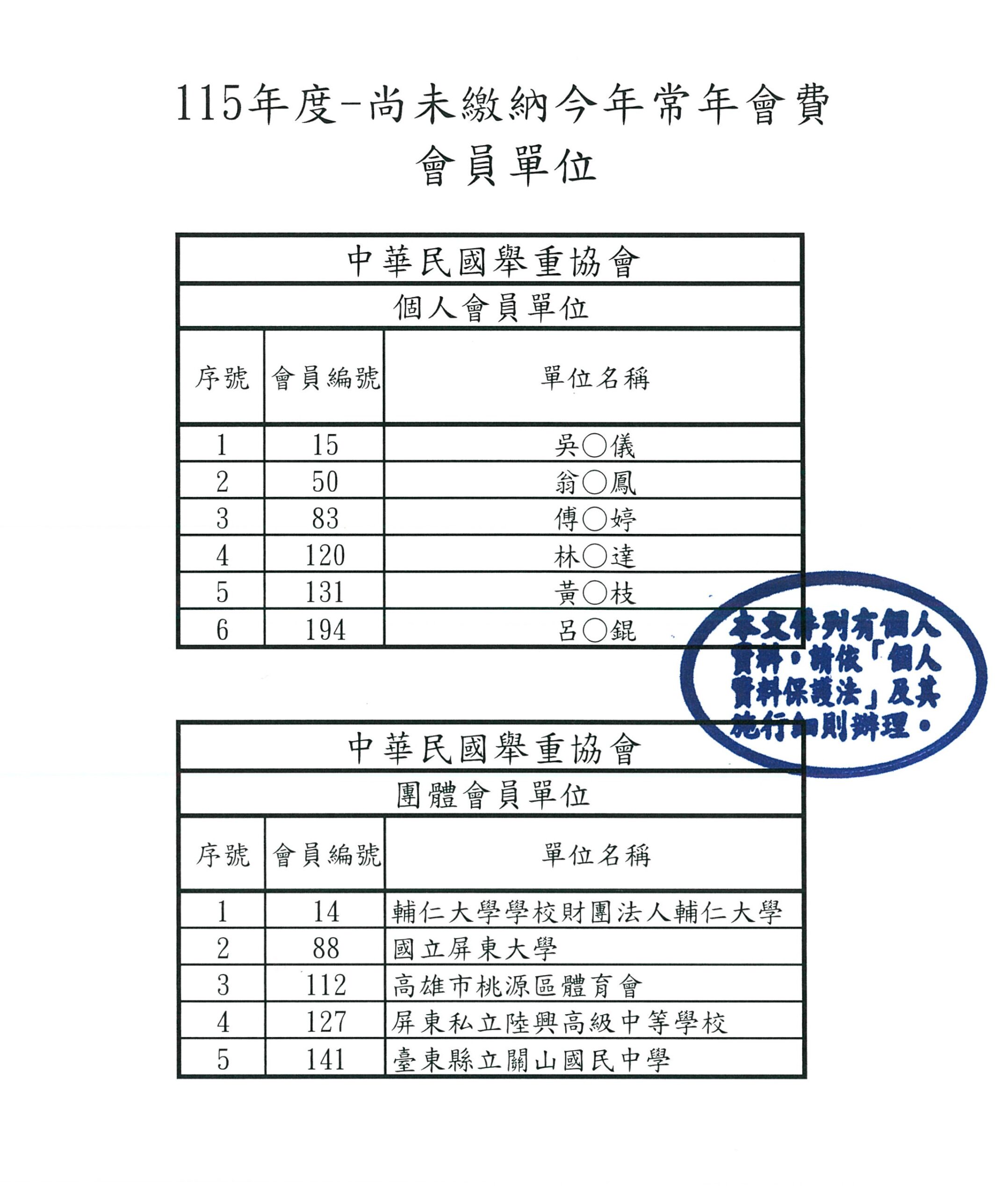 【115年度常年會費】尚未繳納會員單位